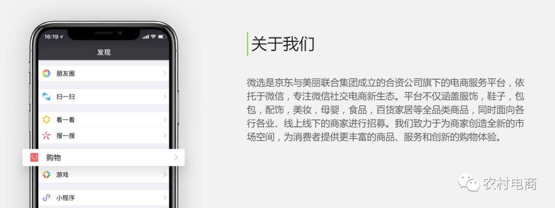 在这样一个大背景下,电商平台及商家都打起了微信这个大流量的主意,2017年双十一,很多电商平台利用微信小程序实现了数倍的流量增长,腾讯作为京东的大股东,这么大的一个趋势自然也不会错过,而京东玩社交电商一直没有什么大的起色,特别是微信给了“购物”这样一级入口也还不如拼多多、淘宝客等从微信里获得的流量多,当然,这样的局面可能会变化了,这几天微信+京东+美丽联合共同推出的“微选”就是为了打造“微信好店大会”。头顶“微信的购物一级入口;京东的零售基础设施;美丽联合的社交电商经验;小程序的持续开放能力。”这么多大旗,不知能搞出什么大事来,非常值的大家的期待,当然,作为有十二年电商经验的老将,也申请了“微选”,下面跟大家聊聊微选及如何入驻。