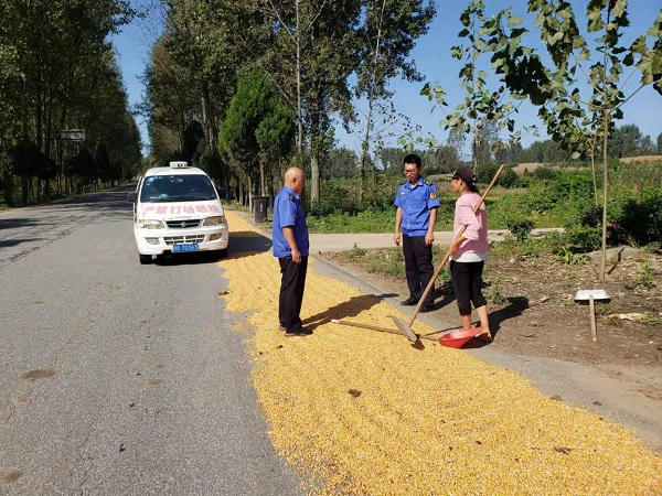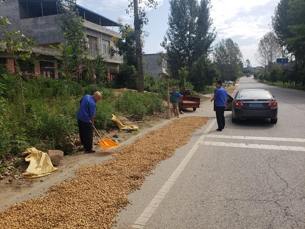 加强公路巡查频次。对国道G312线、G240线,省道S227线、S233线、S333线等干线公路进行重点巡查,对占道打场晒粮行为耐心劝导,坚持以说服教育为主,限时自行清理,对群众清理有困难的,路产路权工作人员主动帮助清扫装运晾晒粮食,及时清除沿路堆放的酒瓶、棍棒、砖块等杂物,消除影响道路通行的安全隐患。
