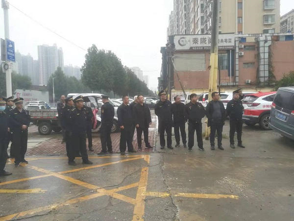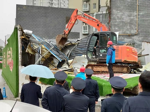 2021年10月20日,南阳市宛城区汉冶街道城建办、综合行政执法中队工作人员冒雨进行了大规模集中“拆违”行动,共出动执法人员40余人,拆除机械1台,拆除面积约400平方米。